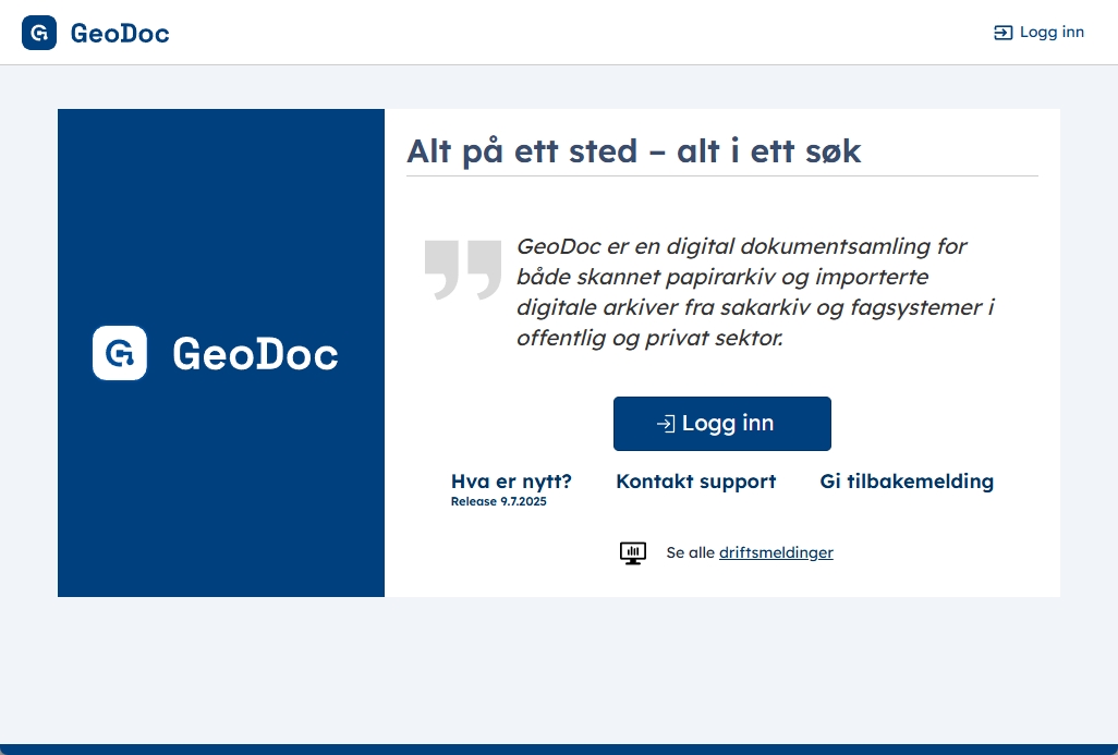 geodoc.no gjelder nå for alle arkiver. Din innlogging er knyttet til et spesifikt arkiv, så du slipper nå å skrive arkivnavnet i adressen når du logger inn